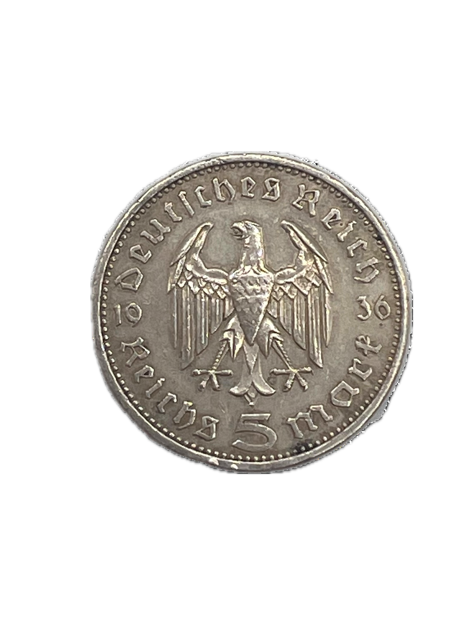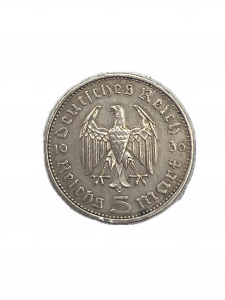 1936 Silver 5 Mark Coin Third Reich Mint-A Nazi Reich Germany